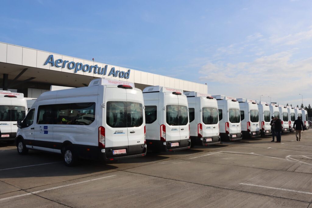 Consiliul Județean Arad a achiziționat 24 de microbuze electrice pentru îmbunătățirea condițiilor de transport ale elevilor din zonele rurale. Finanțarea necesară pentru achiziționarea microbuzelor a fost asigurată printr-un proiect derulat prin Planul Național de Redresare și Reziliență, din fonduri europene, valoarea totală a proiectului fiind de 35,9 milioane de lei.