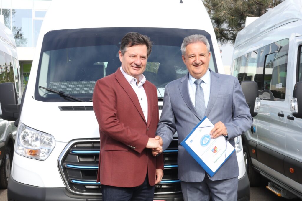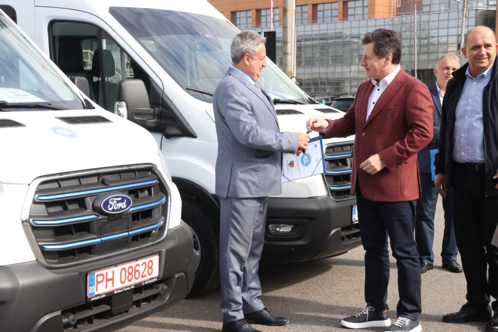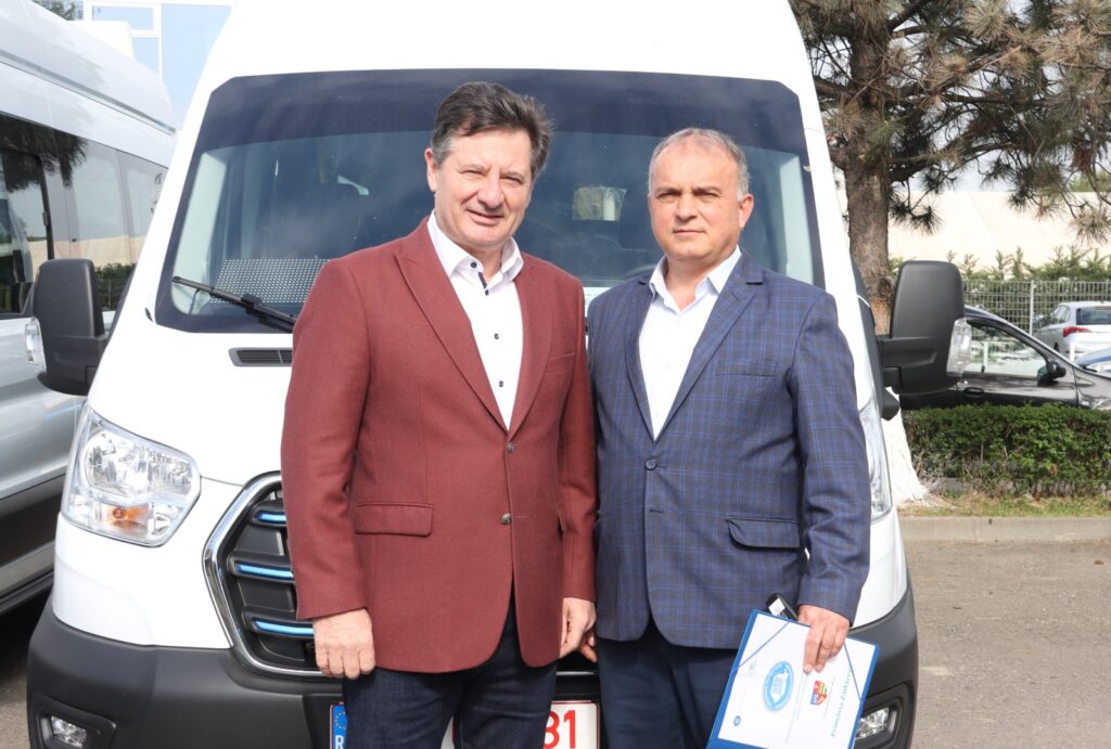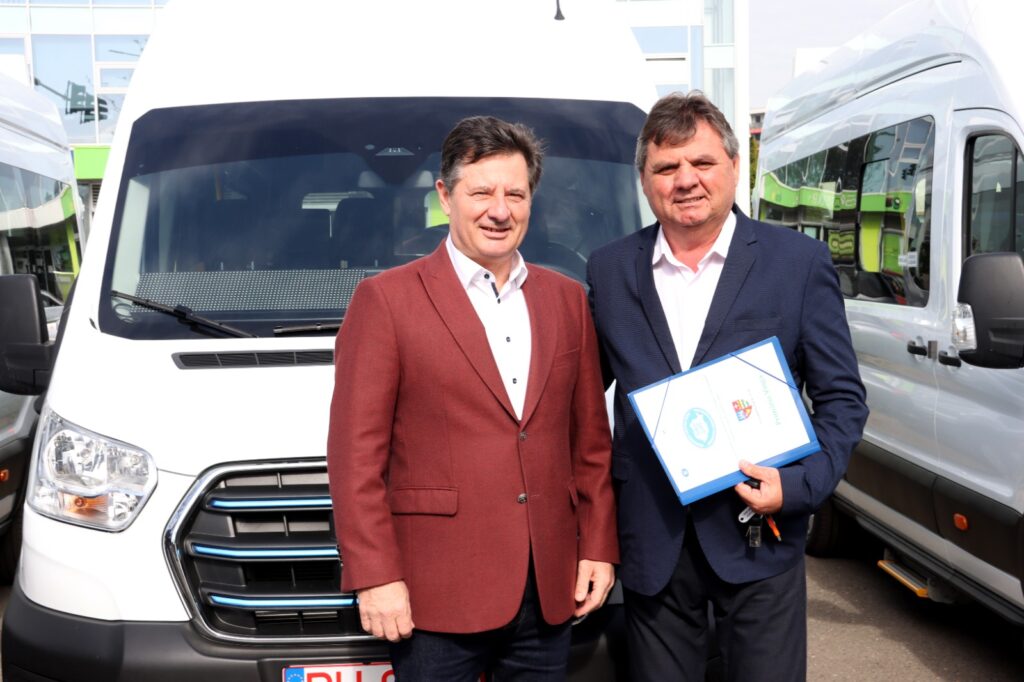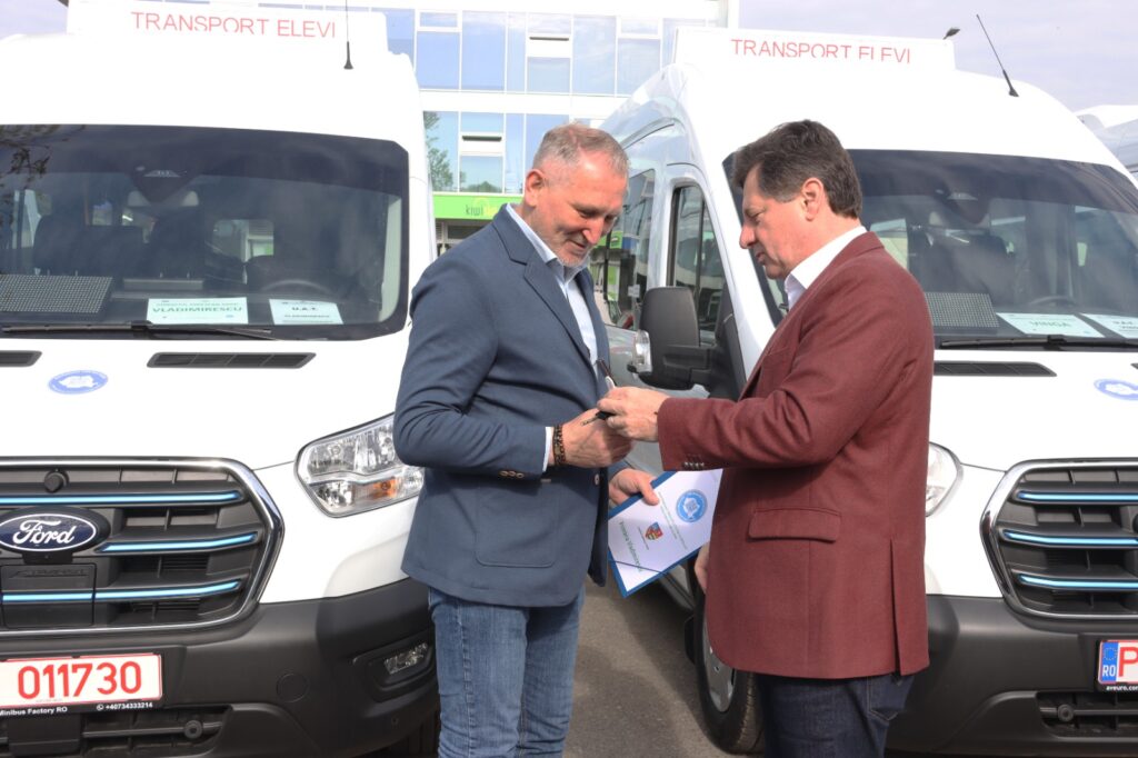 Încă șase microbuze electrice noi au fost astăzi predate de Consiliul Județean unor primării din județ, pentru transportul elevilor. Ele au fost cumpărate din economiile realizate de Consiliul Județean la achiziționarea unui alt lot de microbuze. Valoarea unui microbuz electric este de 605 mii lei fără TVA.